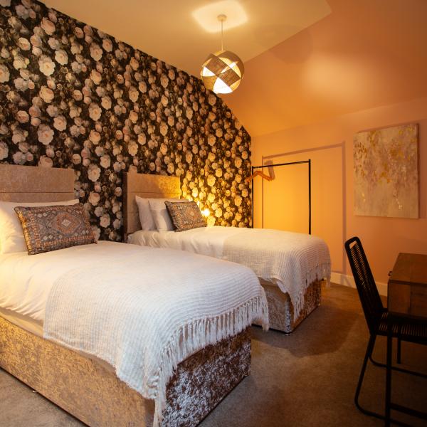 Lovely large, brightly decorated twin room. With divans, dressing table, chair, hanging rail for clothing, twin bedsides, hair drier, luggage rack and black out blinds.