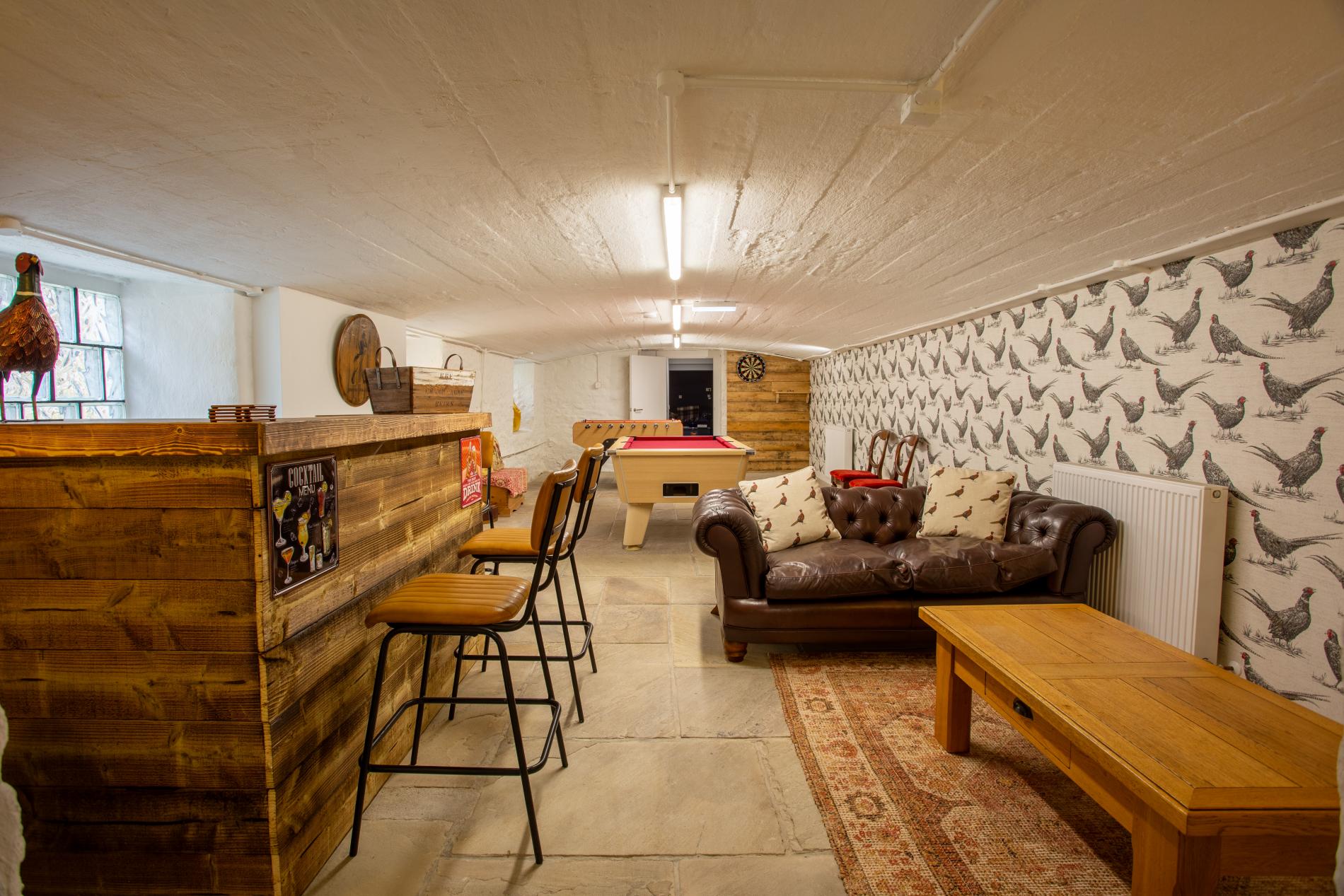 Set over two storeys, the main accommodation is on the upper floor, providing sleeping accommodation for 6 guests with a large Master Bedroom, Twin Room and Double Room all named after castles locally, The Barra, The Fyvie and The Mounie. These are complemented by a fully equipped kitchen, two walk in shower rooms, and an open mezzanine style sitting room. On the ground floor, you will find The Garden Room, for eating and socialising, leading through to the the vaulted ceilinged, Pheasant Bar, complete with your own bar to host, pool table, football table and on further to The Den, for TV/Games /Books and some snug and quiet recreation.